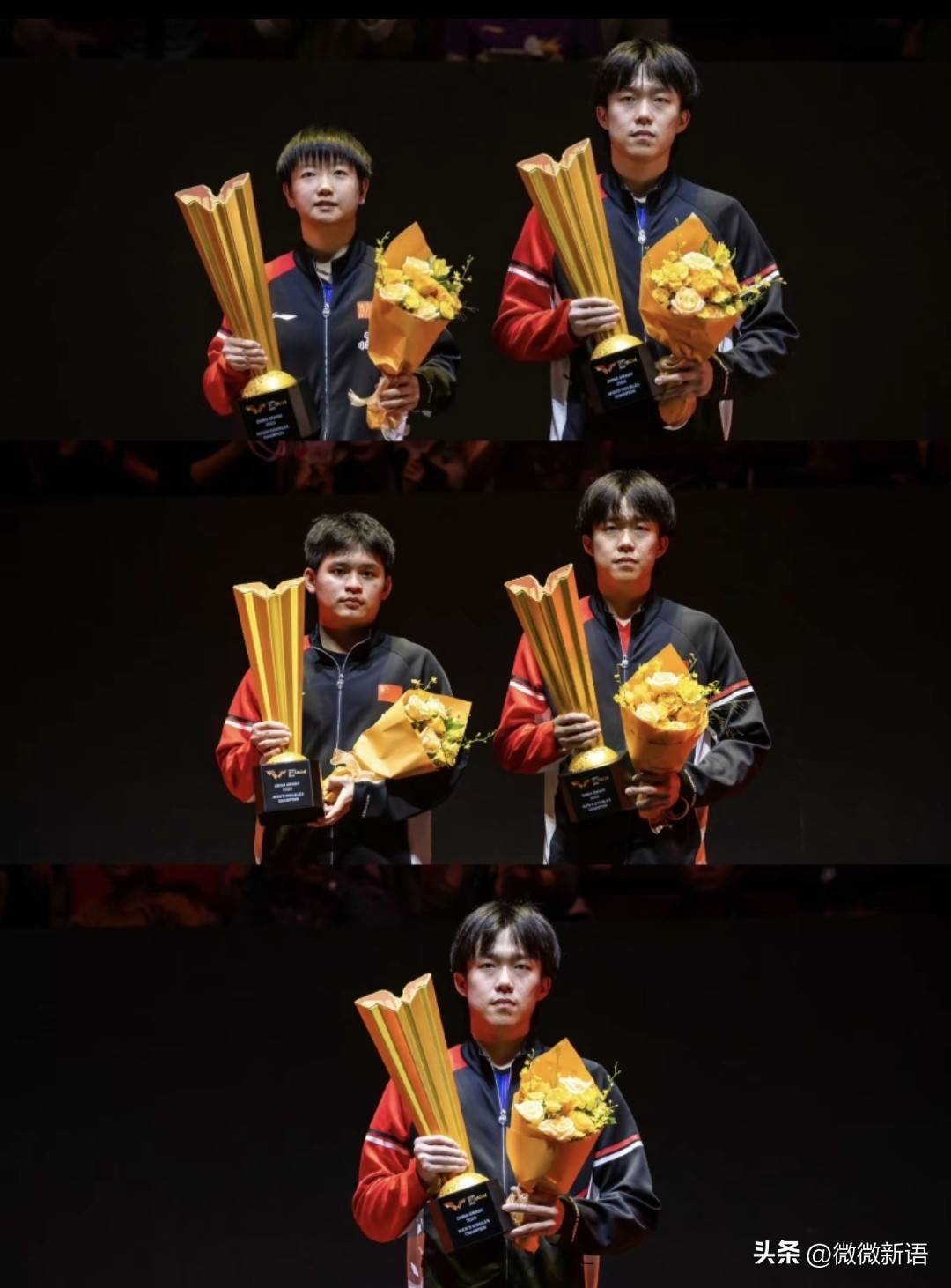 王楚钦和爸爸妈妈一起拍的短片里,妈妈说“三冠王”,这次是拿到真的三冠王了,但是看到王楚钦累成这样,任女士在电视机前也会很心疼她的孩子吧,但是因为身上的责任,他咬牙坚持下来了。