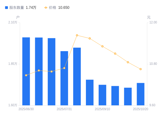 近一年(2024年10月20日至2025年10月20日),凯发电气A股股东户数从2.45万户,减低至1.74万户,降幅29.07%,区间股价下跌16.61%。