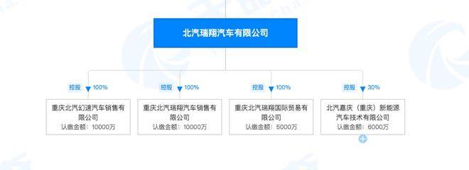 通过天眼查发现,北汽瑞翔汽车有限公司(以下简称:北汽瑞翔),注册资本约为34.63亿元。其中,重庆市两级政府持股占比43%,成为最大股东;北汽集团持股占比42%,成为第二大股东。背靠重庆市两级政府,又有着北汽集团这样在研发、制造、营销等方面拥有丰富经验的整车制造企业的大股东,北汽瑞翔的实力自然不容小觑。此外,北汽瑞翔还对外投资了4家企业,包括重庆北汽瑞翔汽车销售有限公司,预计其销售体系也已经搭建完毕。
