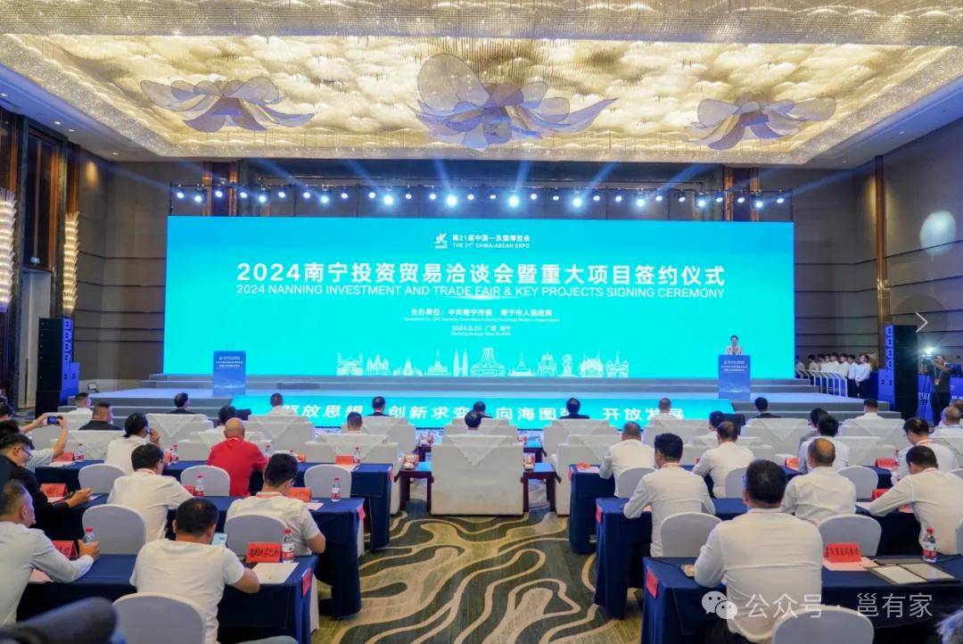 9月24日,在2024南宁投资贸易洽谈会暨重大项目签约仪式上,南宁蓉茉湖国际科技城等重大项目签约,总签约额超200亿元,涉及电子信息、先进装备制造、新材料、生物医药、食品加工、低空经济、绿色环保、现代农业、大健康文旅等重点产业。