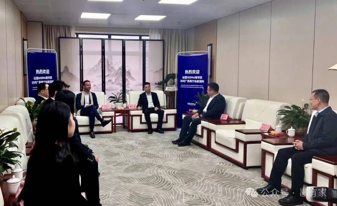 11月27日,为了加快南宁国际科技产业城项目落地,法国SKEMA商学院代表团到青秀区蓉茉湖片区实地考察,并洽谈有关国际合作办学的事宜。