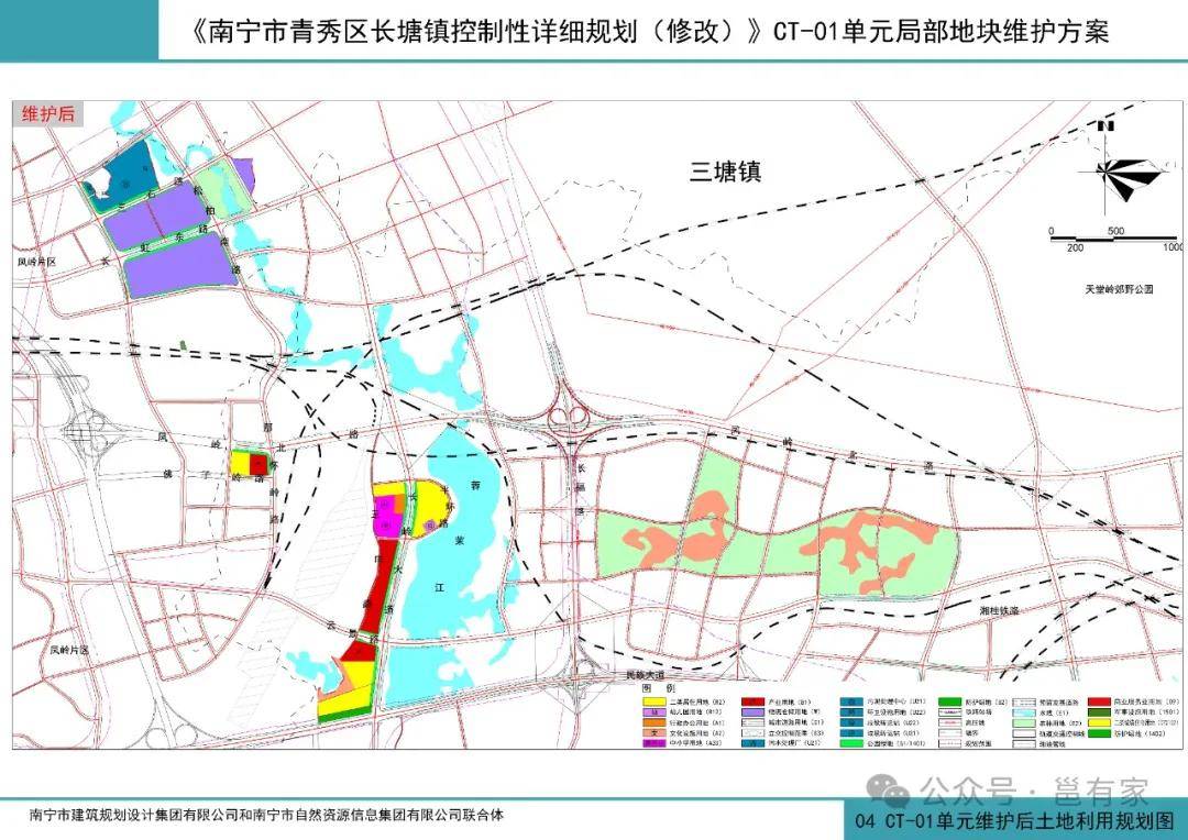 2024年11月4日,南宁市自然资源局官网发布《南宁市青秀区长塘镇控制性详细规划(修改)》 CT-01单元局部地块维护方案,汇总了过去半年以来关于蓉茉湖一带的控规调整,主要涉及民族大道延长线以北、规划支路以南、长岭大道以西、三甲路以东围合区域等局部地块,指向非常明显。
