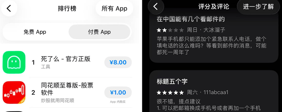 从“死了么”官微可以看到,该应用目前已拓展至全球40多个国家。在中国市场,该应用稳居付费榜首。在美国、英国、加拿大、比利时等国,也攀升至榜单第二位。