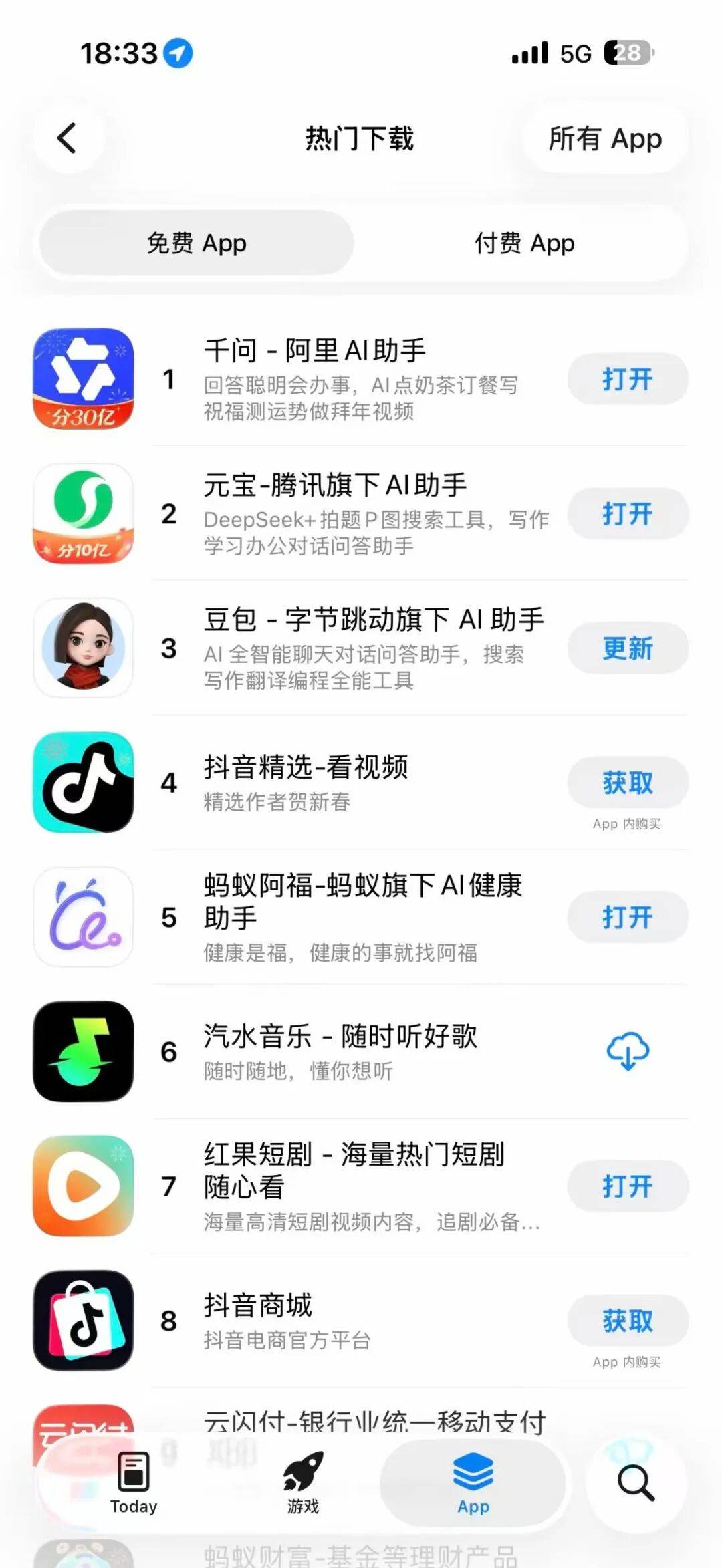 得益于活动的火爆,千问 App 昨天登上 App Store 免费 App 榜首,超越元宝和豆包。