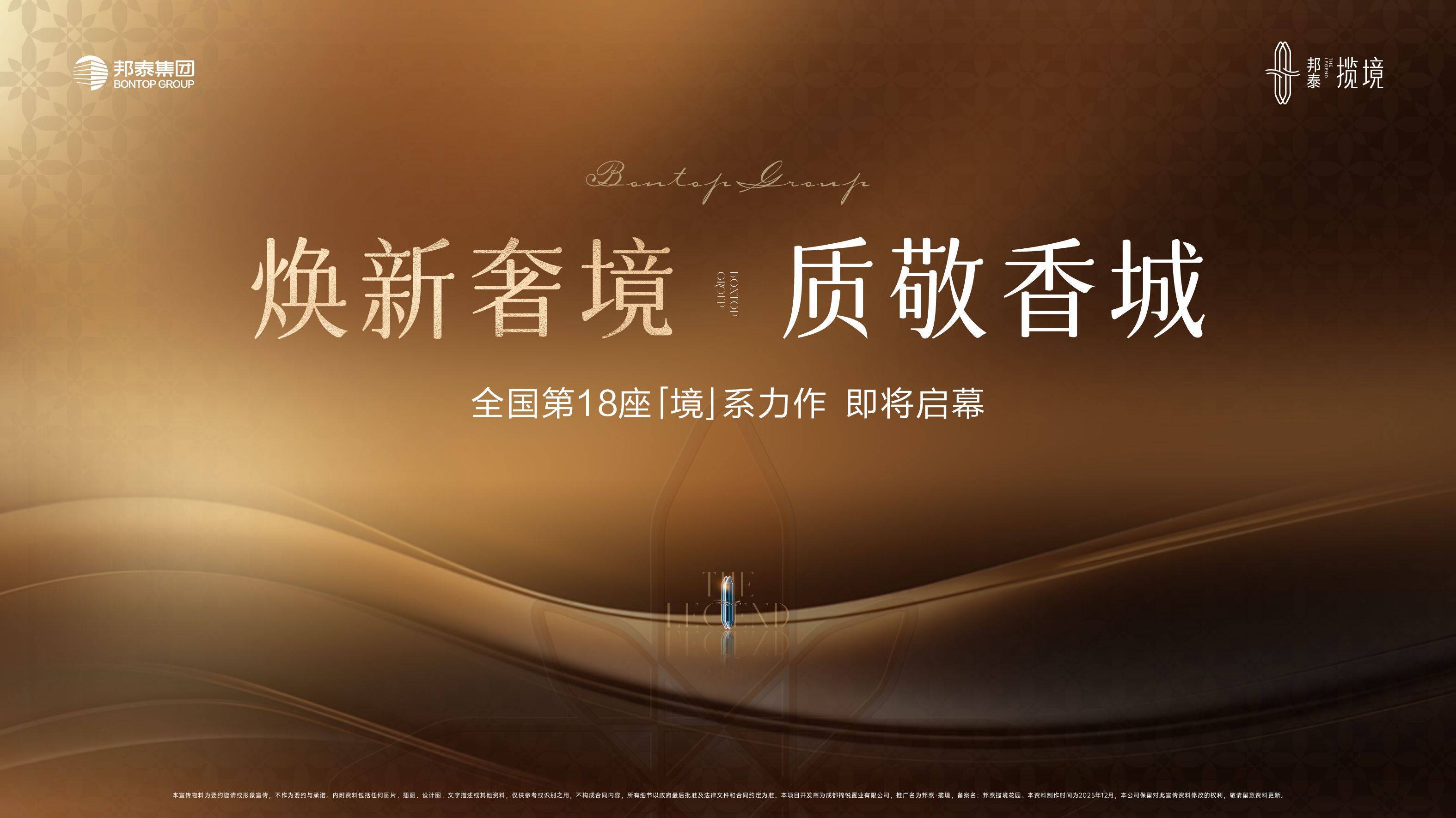 2025年邦泰·朗境逆势而上,成为区域罕见【六开六罄】现象级红盘;同时坐落一环339旁的千万级地标豪宅邦泰·藏锦,历经718天精工细琢,璀璨绽放;同年8月,郫都、新都两宗优质地块再入版图。邦泰以“品质筑品位”回应时代所向,与成都理想生活同频共振。